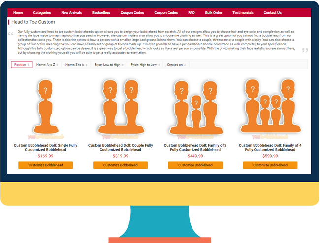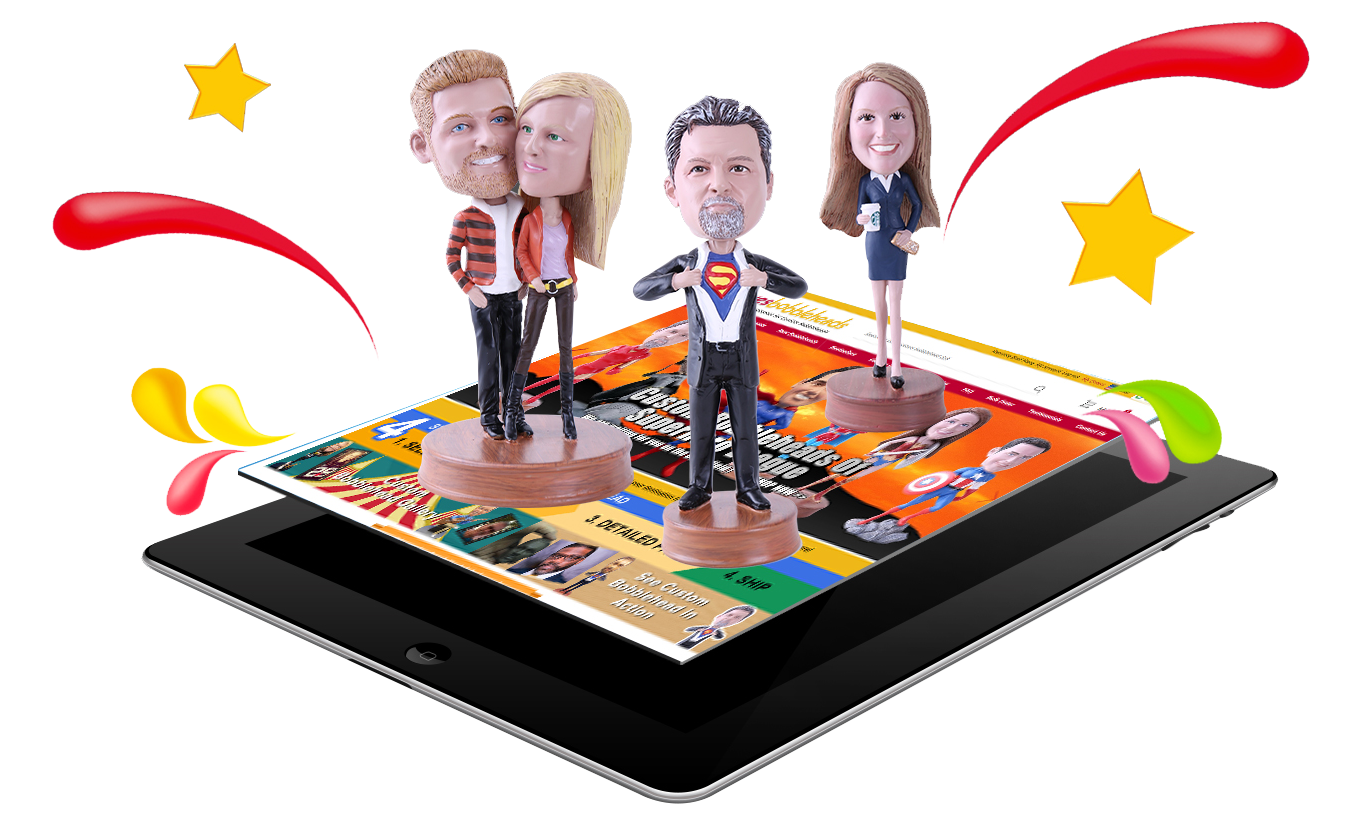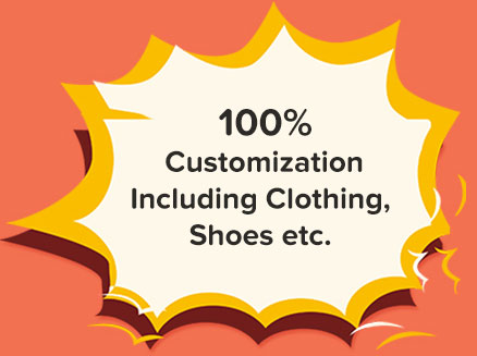 If you cannot find a standard body model that meets your needs, then the head to toe 100% customization is the option to go. This option allows you to freely design your bobblehead doll, including the body style and pose. Our artist will sculpt the doll fully according to your uploaded photos and your instructions.